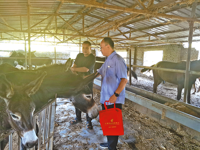 邮储银行信贷员上门送贷款,助力乡村振兴。