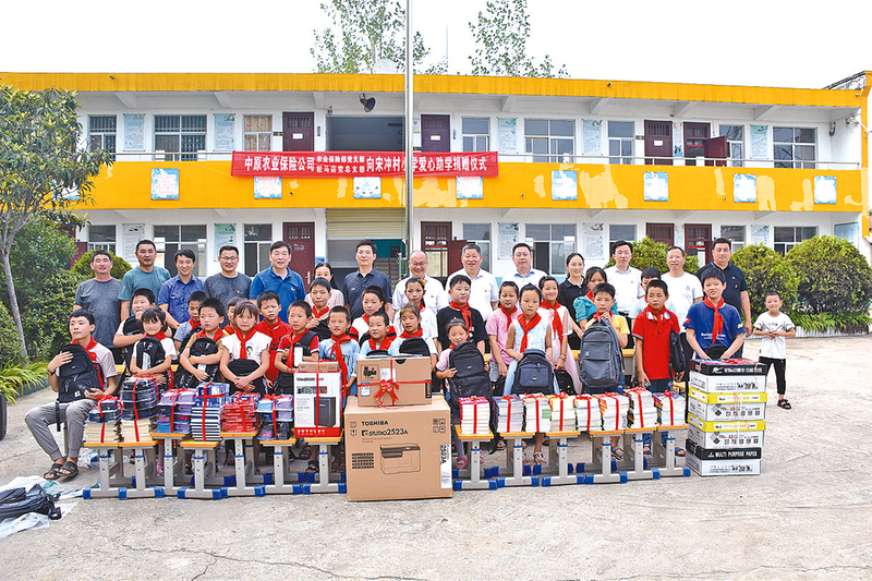 中原农险驻马店市分公司在宋冲村小学开展捐资助学活动。