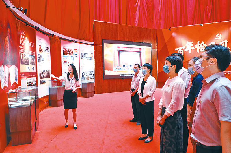 市审计局党组书记、局长刘翠萍带领党员干部参观驻马店市庆祝建党百年档案图片文献展。