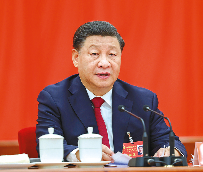 10月23日,中国共产党第二十届中央委员会第一次全体会议在北京人民大会堂举行。 新华社记者 李 涛 摄 新华社北京10月23日电 刚刚在中国共产党第二十届中央委员会第一次全体会议上当选的中共中央总书记习近平和中共中央政治局常委李强、赵乐际、王沪宁、蔡奇、丁薛祥、李希,23日中午在人民大会堂同采访中共二十大的中外记者亲切见面。