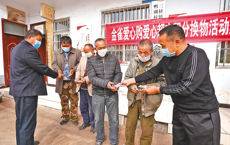 10月28日,在河南金雀电子商务有限公司的努力下,汝南县20多家乡村爱心超市积分兑换物品活动