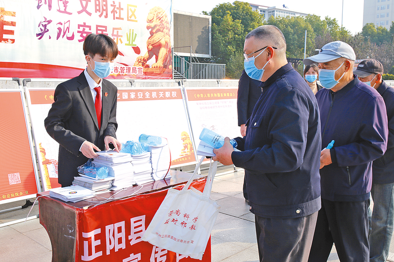 为深入贯彻党的二十大关于推进国家安全体系和能力现代化的重大部署,推进国家安全体系和能力现代化,坚决维护国家安全和社会稳定,在《中华人民共和国反间谍法》颁布实施8周年纪念日到来之际,正阳县人民法院干警到县城老广场开展宣传活动。 通讯员 王树恒 摄