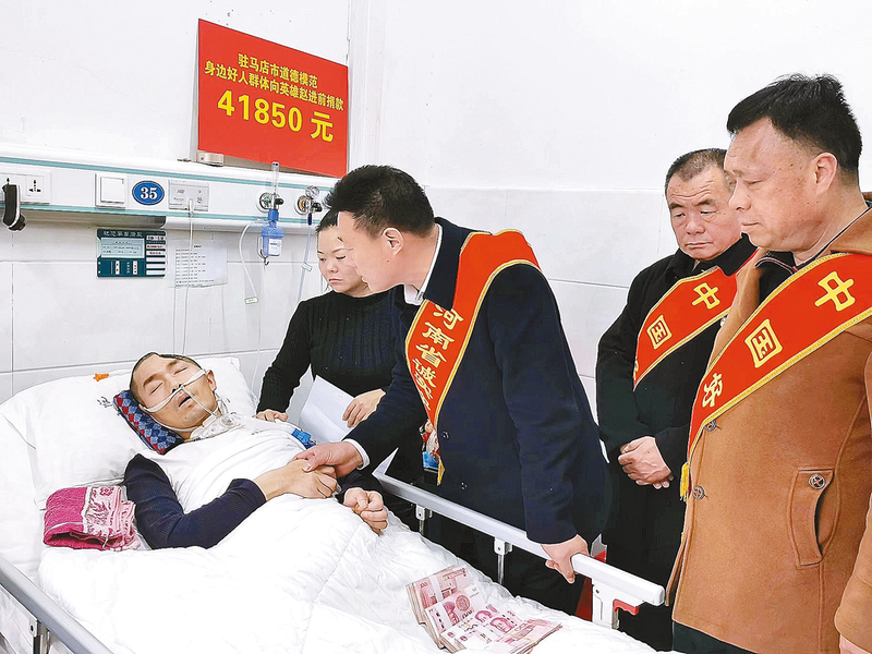 驻马店好人代表赴开封看望慰问赵进前,并送去4万余元捐款。 记者 郭建光 摄 记者 郭建光 李丹丹 文/图