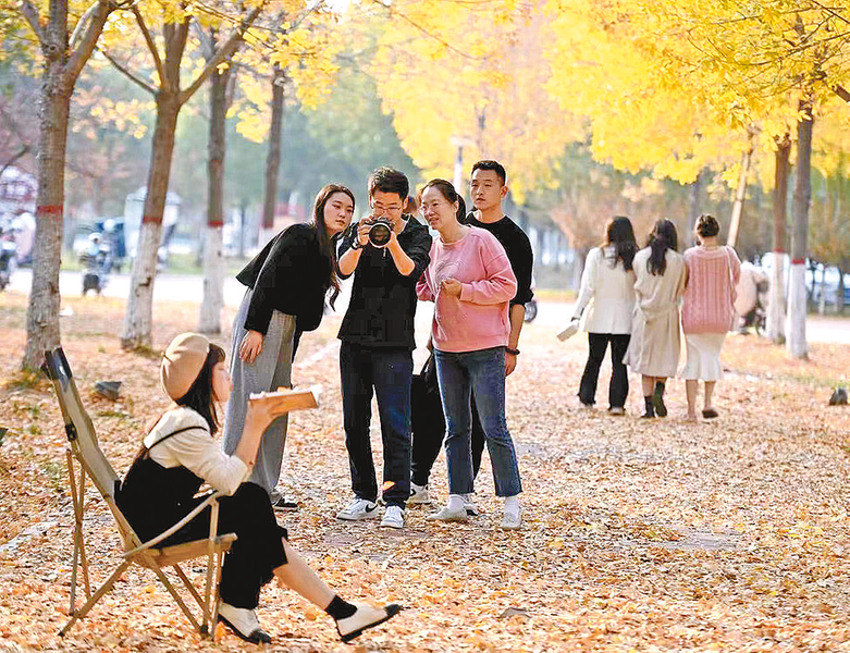 初冬时节,新蔡县市民之家广场层林尽染、色彩斑斓、美景如画,吸引不少市民前来赏景拍照。