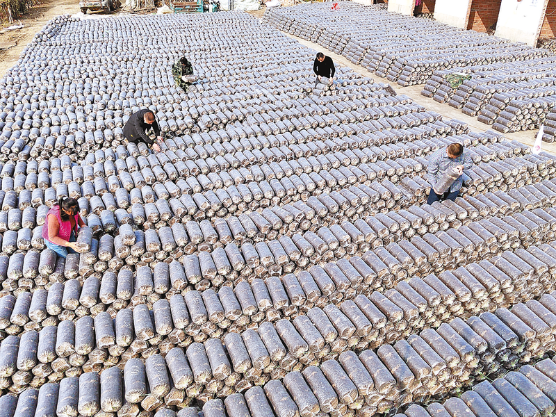 11月13日,正阳县熊寨镇毛集村村民在庭院种植蘑菇。该村成立6家蘑菇种植合作社,带动35户村民种植食用菌增收致富。