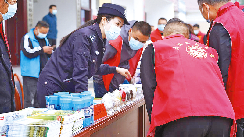 近日,正阳县公安局禁毒大队民警开展了禁毒宣传进农村活动。在熊寨镇王楼村,民警向群众发放禁毒宣传彩页、展示仿真毒品模型、讲解毒品知识。
