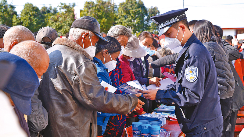 近日,正阳县2022年文化科技卫生“三下乡”集中活动在慎水乡刘冢村举办。正阳县公安局借助这一有利时机,组织民警和“夕阳红”反诈宣传队开展反电信网络诈骗宣传,为群众送去反诈防骗文化大餐。
