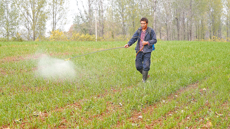 11月23日,驿城区蚁蜂镇彭楼村村民彭文学正在为麦田施肥。为切实做好冬季麦田管理,实现小麦安全越冬,当地涉农部门积极引导群众抓住当前晴好天气,为冬小麦施肥,查看小麦墒情、病虫情,争取明年夏粮有个好收成。