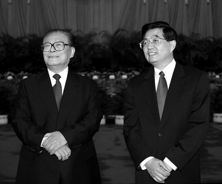 2019年10月1日,庆祝中华人民共和国成立70周年大会在北京天安门广场隆重举行。这是习近平同志、江泽民同志、胡锦涛同志等在天安门城楼上。