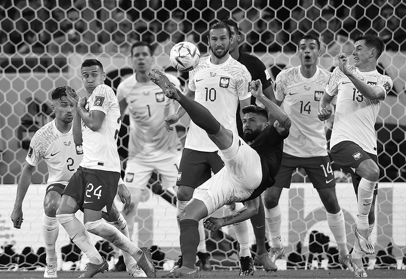 当日,在卡塔尔多哈阿图玛玛球场进行的2022卡塔尔世界杯足球赛八分之一决赛中,法国队以3比1战胜波兰队。 新华社记者 曹 灿 摄
