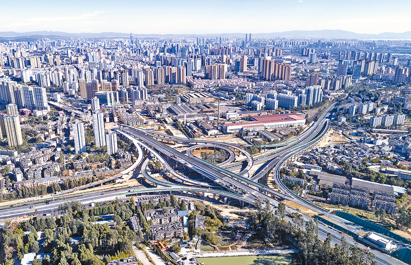 12月9日,云南新昆楚高速公路(昆明至楚雄)昆明入城段开通运营。此次通车路段起于昆明市西三环枢纽立交,止于西北绕城枢纽立交,全长约12.7公里,与2022年1月21日通车运营的西北绕城枢纽立交至楚雄广通段连通,新昆楚高速公路实现全线通车。 新华社记者 陈欣波 摄