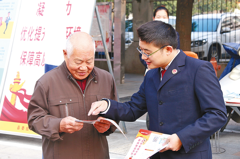 上蔡县人民检察院检察干警走上街头向群众宣传普及法律知识。 毕亚磊 摄