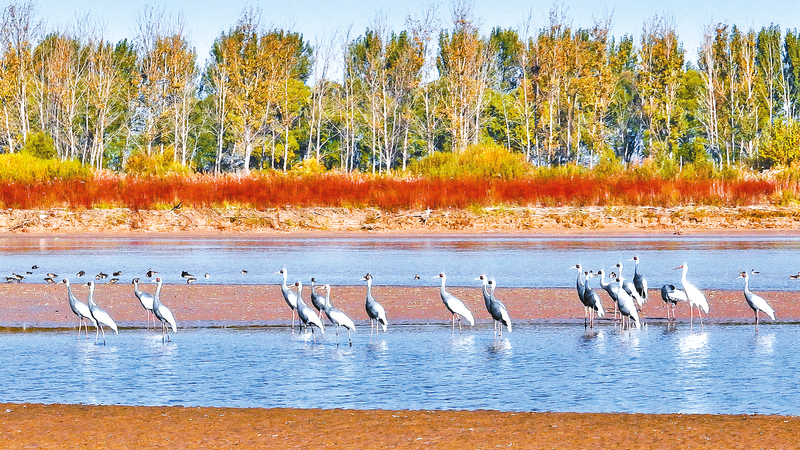 白枕鹤。 新华社记者 郭绪雷 摄