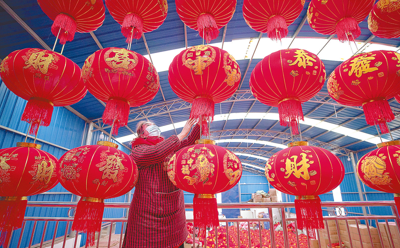 12月22日,贵州省黔东南苗族侗族自治州丹寨县金钟经济开发区一家灯笼厂,工人检查灯笼成品质量。 新年临近,工人忙着赶制各式灯笼,供应节日市场。 新华社发