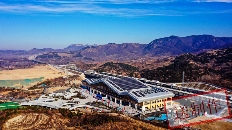 12月30日拍摄的济(南)莱(芜)高铁雪野站(无人机照片)。