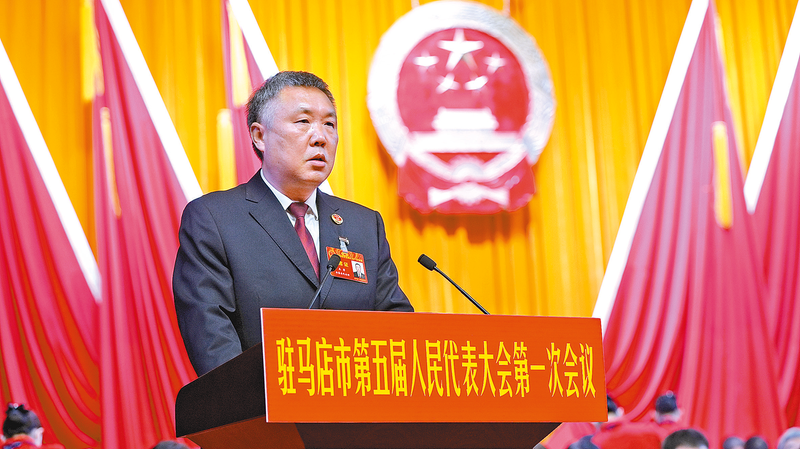 1月5日下午,在驻马店市第五届人民代表大会第一次会议上,市人民检察院代检察长王军向大会作工作报告。 记者 张 建 摄