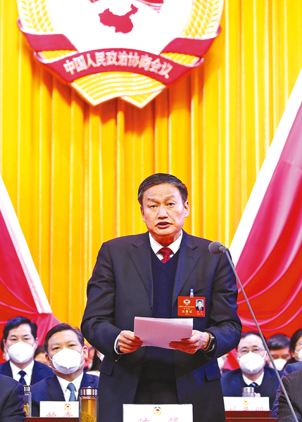 新当选的五届市政协主席陈锋发表讲话。记者 弓华静 摄