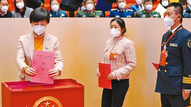 举手表决。 记者 张 建 摄