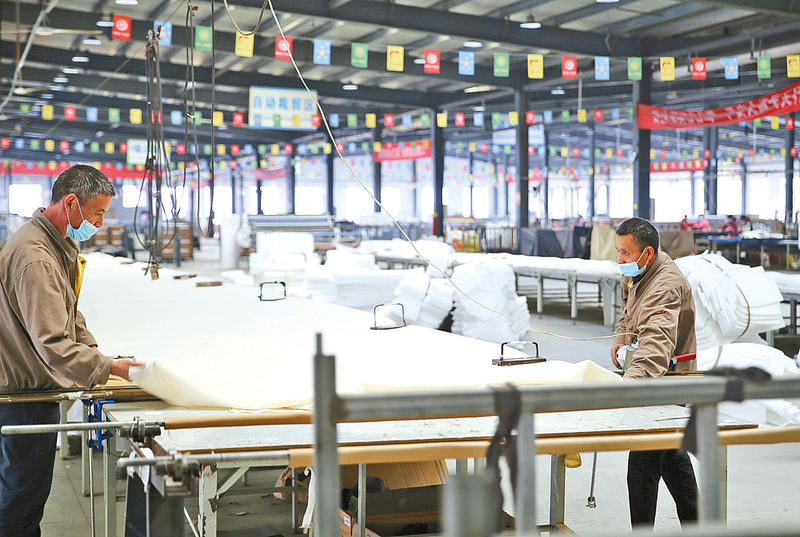 近日,在河南基业户外休闲用品有限公司生产车间,工人正赶制订单产品。该企业由宁波格莱特户外休闲用品有限公司在平舆县投资6亿元兴建,拥有国际领先的生产线和自动化检测系统,所产户外休闲用品全部通过宁波港出口海外。目前,平舆县各乡镇编藤加工点正在有序建设中,积极吸纳有劳动能力的脱贫户编藤,在家门口实现就业,拓宽就业渠道和增收空间。