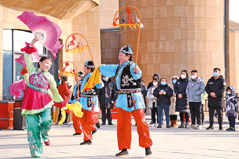 1月10日,石家庄市井陉县庄旺拉花队演员在井陉县南横口村表演井陉拉花。当日,河北省石家庄市井陉县举行文化科技卫生“三下乡”活动,通过文艺演出、医疗义诊、科普教学等形式,走进乡村开展志愿服务活动,丰富当地群众生活。 新华社记者 骆学峰 摄