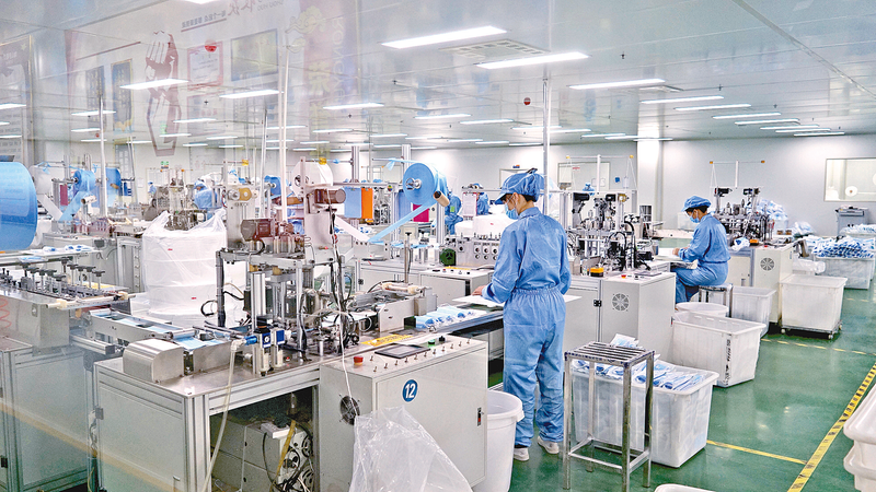 日前,在位于正阳县的驻马店市淘儿宁药械有限公司无菌生产车间内,口罩生产线正在飞速运转,工人有条不紊裁剪、分拣、包装、杀菌。该公司负责人表示,口罩的质量事关消费者的切身利益,将严格落实企业主体责任,严把产品质量关,为消费者生命健康保驾护航。 记者 徐佳瑞 见习记者 张启龙 摄影报道