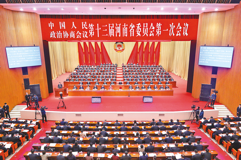 1月13日上午,中国人民政治协商会议第十三届河南省委员会第一次会议在省人民会堂开幕。 河南日报记者 董 亮 杜小伟 蔡迅翔 摄影报道 本报讯(河南日报记者 刘亚辉 陈小平)1月13日上午,在雄壮的中华人民共和国国歌声中,中国人民政治协商会议第十三届河南省委员会第一次会议在省人民会堂隆重开幕。