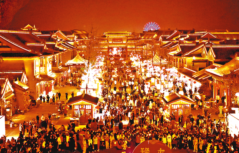 坐游船、古装快闪、观民俗、品美食……春节假期,皇家驿站景区游人如织,驿城老街、运河西街、美食街等一派热闹喜庆的新年气象,每天客流量都超过10万人次。人们的脸上洋溢着笑容,和流光溢彩的景区相得益彰,一派幸福祥和的景象。