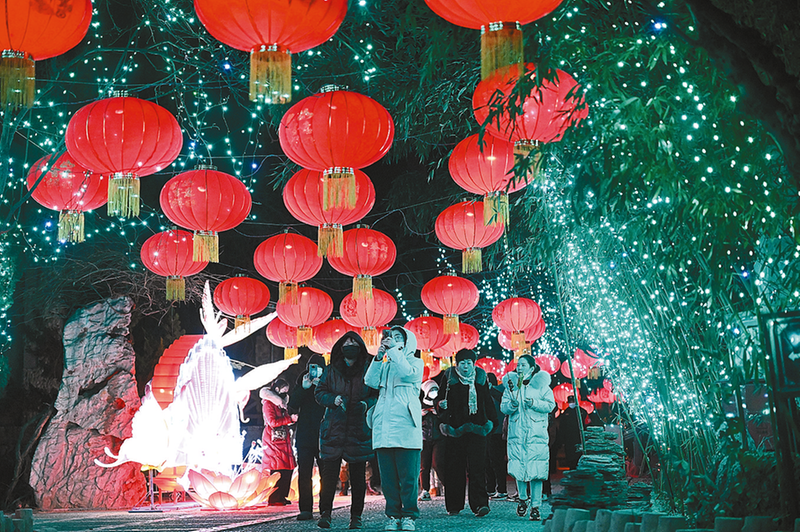 春节期间,天津中华石园景区举办的新春民俗灯会吸引了众多游客。夜幕降临后,融合兔子、二十四节气等元素的各式彩灯结合现代光影变得惟妙惟肖、活灵活现。市民及游客在此赏灯游玩、“打卡”拍照,感受节日氛围。