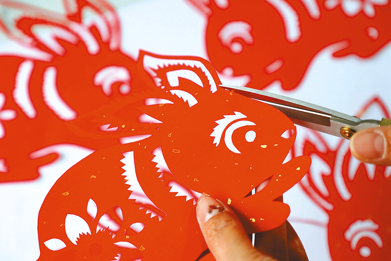 山东省滨州市惠民县李庄镇民间艺人在创作生肖兔剪纸作品(1月13 日摄)。 新华社发