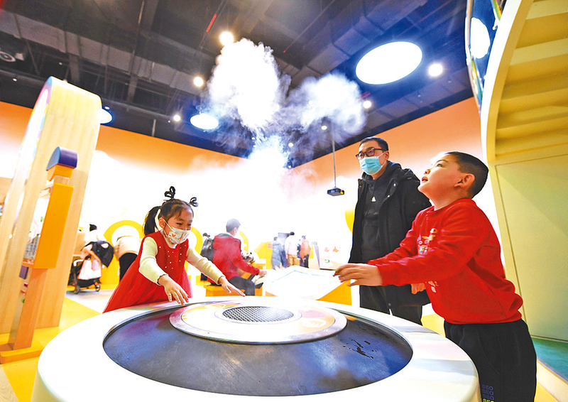 图② 1月27日,小朋友在河南省科技馆新馆“童梦乐园”展厅体验科技项目。当日是春节假期最后一天,许多市民和学生走进河南省科技馆新馆,感受科技魅力,丰富假期生活。