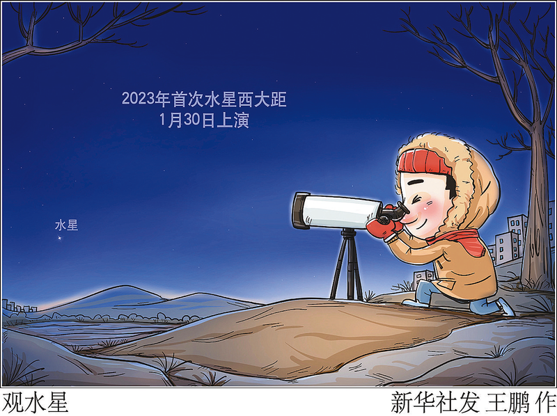 2023年首次水星大距即将上演。天文科普专家介绍,1月30日天宇上演水星西大距,我国感兴趣的公众届时有望在晨曦中寻觅到水星的身影。 新华社发 王 鹏 作
