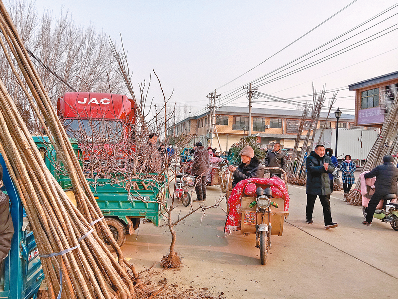 2月1日,记者在汝南县板店乡看到,苗木市场非常热闹,街道两侧摆满了各种苗木,随处可见苗农们买卖交易、装车运苗的忙碌身影。由于该乡苗木品种齐全、价格实惠,引得县内外不少苗木经销商前来选购所需品种,呈现一派人勤春早、苗木俏销的热闹景象。 记者 陈 诚 冯 帅 摄影报道