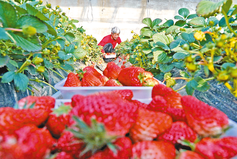 2月1日,秦皇岛市抚宁区榆关镇农民在大棚内采摘草莓。近年来,河北省秦皇岛市抚宁区持续推进农业产业结构调整,引导农民因地制宜发展特色设施农业,种植高品质蔬菜和水果,促进农民增收,助力乡村振兴。 新华社记者 杨世尧 摄