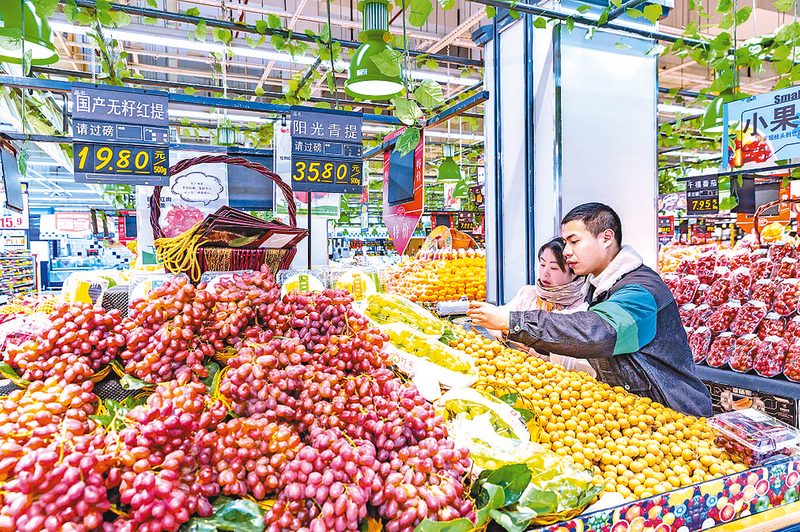 2月10日,消费者在贵州省安顺市西秀区一家超市选购水果。