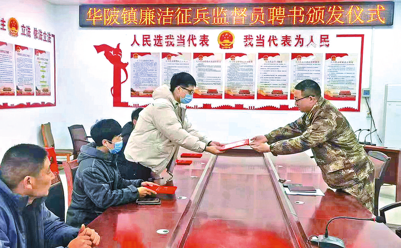 为确保征兵工作公开透明、廉洁公正,近日,上蔡县华陂镇举行廉洁征兵监督员聘书发放仪式,为5名乡镇廉洁征兵监督员颁发聘书。