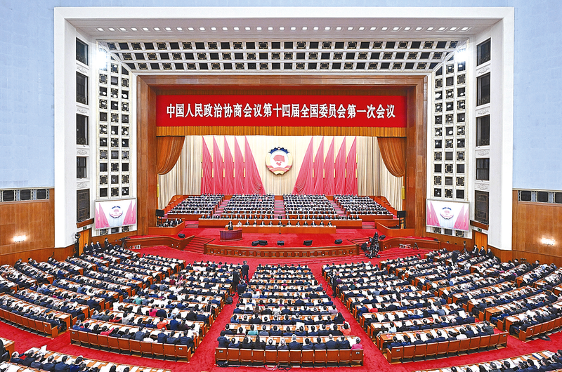 3月4日,中国人民政治协商会议第十四届全国委员会第一次会议在北京人民大会堂开幕。 新华社记者 翟健岚 摄 新华社北京3月4日电 踔厉奋发共襄复兴伟业,勇毅前行再谱时代华章。历经光辉岁月、坚持团结和民主两大主题的人民政协,又迎来一个重要的历史时刻:中国人民政治协商会议第十四届全国委员会第一次会议4日下午在人民大会堂开幕。