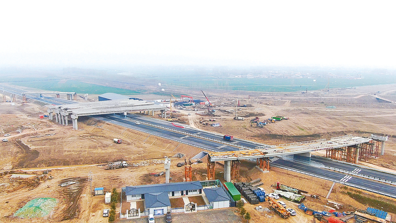 3月4日,位于上蔡县的沈卢高速沈丘至遂平段与安罗高速交会处施工现场一派热火朝天的景象。