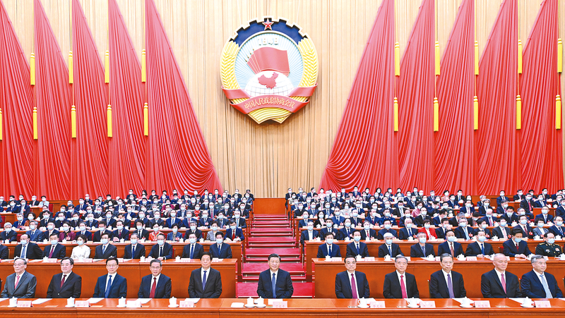 3月11日,中国人民政治协商会议第十四届全国委员会第一次会议在北京闭幕。这是习近平、李克强、栗战书、汪洋、李强、赵乐际、韩正、蔡奇、丁薛祥、李希、王岐山在主席台就座。 新华社记者 谢环驰 摄