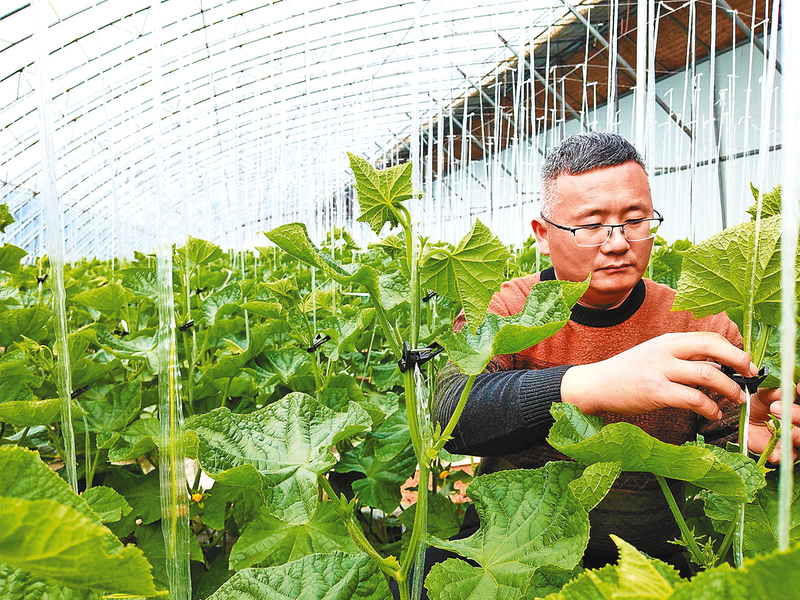 近日,上蔡县黄埠镇南王楼村无公害黄瓜喜获丰收,年产值达7万元,拓宽了群众致富路。图为村民正在剪修黄瓜秧。 记者 刘永奇 摄