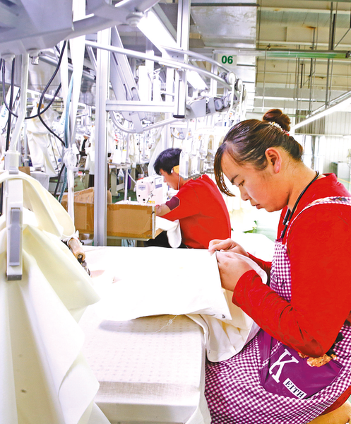 3月23日,记者在河南华丝时装有限公司生产车间看到,工人正在赶制订单。该公司主要从事高档时装服装纺织品的生产销售和商品的进出口贸易,拥有自主品牌玛素米,同时代加工欧时力、太平鸟等知名品牌。2022年,该公司生产高档时装120万多件,年产值2.88亿元。