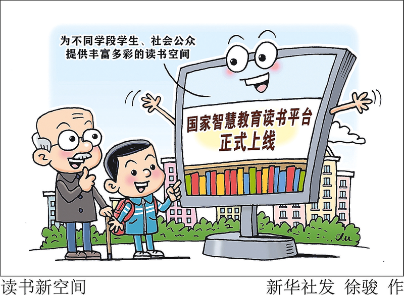记者3月28日从教育部获悉,国家智慧教育读书平台于当日正式上线。该平台依托数字技术,通过汇聚优质资源、营造互动场景、展示阅读成果,为不同学段学生、社会公众提供丰富多彩的读书空间。 新华社发 徐 骏 作
