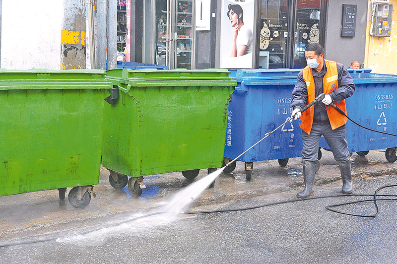 近日,我市文明志愿者、环卫工人走上街头,开展文明创建活动,维护市容环境,巩固创文成果,同心共建文明家园。 通讯员 王美心 摄