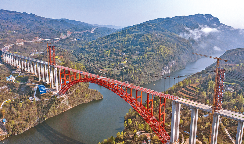 当日,由中交一公局承建的德余高速乌江特大桥主体贯通。该桥位于贵州省思南、石阡、凤冈三县交界处,是德江至余庆高速公路的重要控制性工程,全长1834米,主桥为504米上承式钢管混凝土拱桥。新华社记者 陶 亮 摄