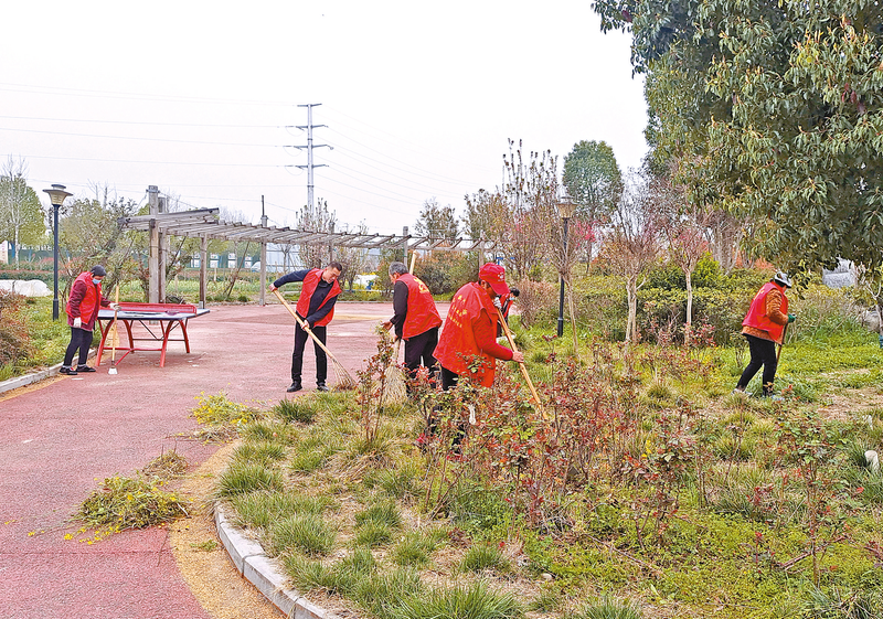 文明用语更规范了,公共场合不再有人乱丢垃圾,门前不再堆放杂物,道路更整洁,村庄更美观……连日来,开发区关王庙乡杨桥村以开展农村人居环境整治为契机,擦亮乡村底色,提升乡村颜值,争创“五星”支部,助推打赢创建文明城市关键仗。图为该村“两委”干部、村民组长、志愿者集中清理村中游园杂草和卫生死角。
