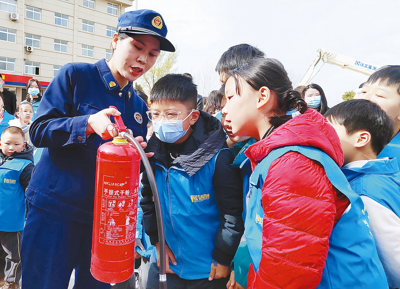 3月27日是第28个全国中小学生安全教育日,正阳县开展“防火灾、防溺水、防诈骗、交通安全、禁毒”形式多样的安全教育活动,着力提高学生安全防范意识,增强学生自我防护能力,保障学生健康成长。图为消防救援大队队员在为学生讲解灭火器使用常识。