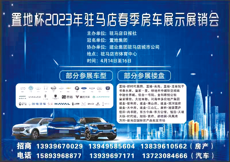 驻马店房产汽车展销会4月14日至16日举行