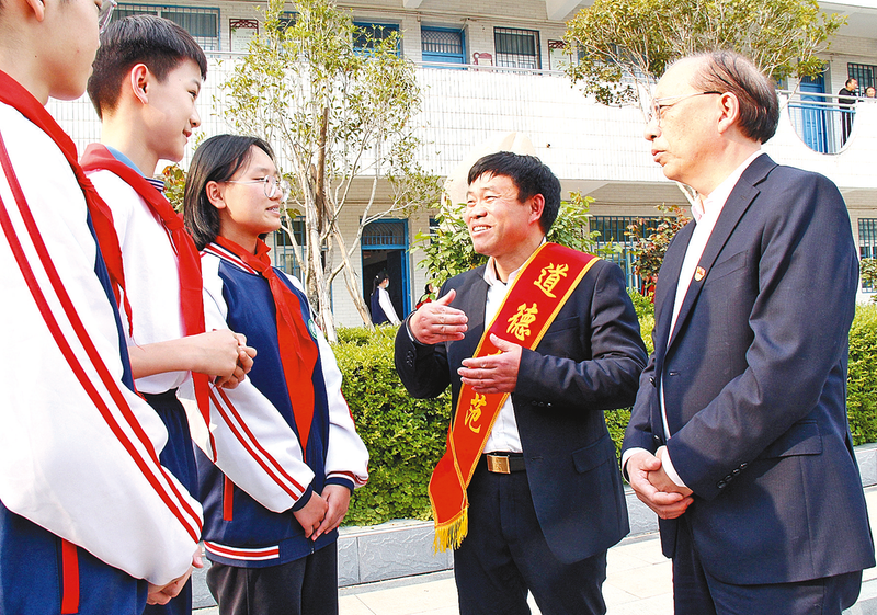 该校邀请党的二十大代表、全国优秀共产党员、时代楷模、全国优秀教师、南阳市镇平县高丘镇黑虎庙小学校长张玉滚,中国好人、河南省优秀共产党员、省第十四届人大代表张大生为学生作报告。