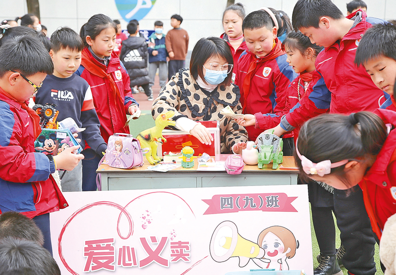近日,驻马店实验小学举行学雷锋爱心义卖活动,同学们以自己微薄的力量帮助更多需要帮助、温暖和关怀的人。 通讯员 李鹏飞 摄