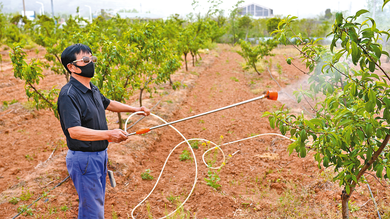 近日,在驿城区祥瑞农民专业合作社蟠桃种植基地,果农正在施肥。为了保证桃子的品质和口感,果农使用绿色无污染肥料进行施肥,并加强每个阶段的科学管理,每年桃子上市后供不应求。