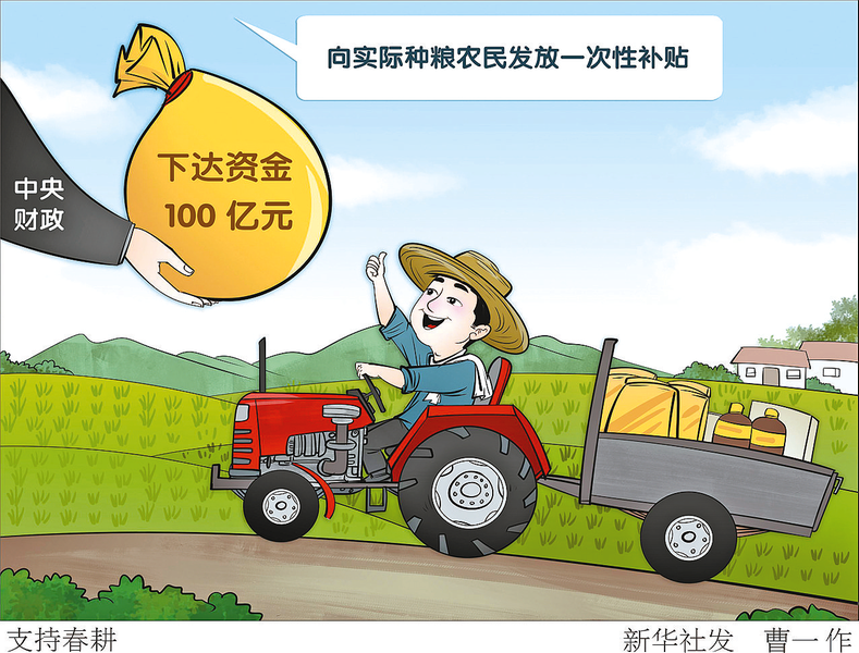 新华社北京4月17日电 记者17日从财政部了解到,根据党中央、国务院决策部署,统筹考虑农资市场价格走势和农业生产形势,中央财政近日下达资金100亿元,向实际种粮农民发放一次性补贴,统筹支持春耕生产,进一步调动农民种粮积极性。